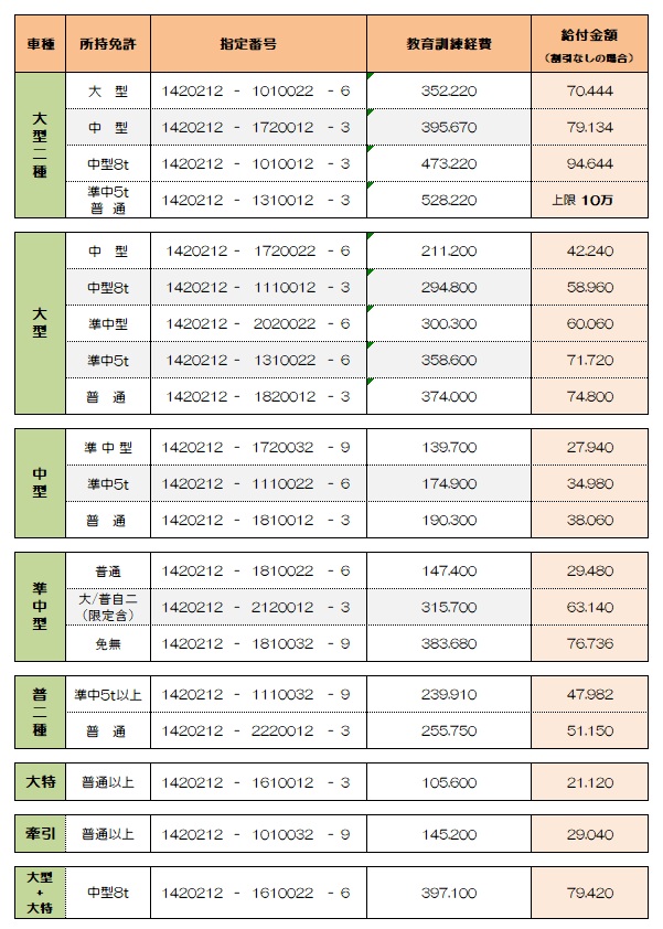 教育訓練給付制度とは、働く方々の主体的な能力開発やキャリア形成を支援し、雇用の安定と就職の促進を図ることを目的として、厚生労働大臣が指定する教育訓練を修了した際に、受講費用の一部が支給されるものです。給付金の対象となる教育訓練は、そのレベル等に応じて、専門実践教育訓練、特定一般教育訓練、一般教育訓練の3種類があり、小田原ドライビングスクールでは、一般教育訓練を受講することが出来ます。一般教育訓練では、10万円を上限に受講生本人が支払った教育訓練経費の20%に相当する額が、給付されます。